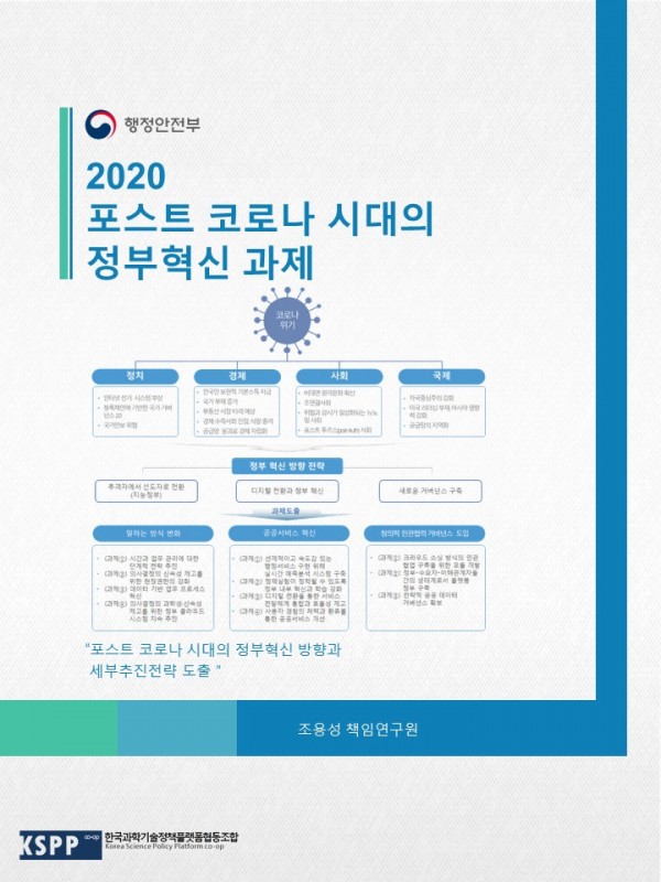 2020 포스트(post) 코로나 시대의 정부혁신 과제 연구 관련링크 페이지 정보 작성일20-08-10 15:57 조회5,355회 본문 포스트 코로나 시대의 행정환경 및 정부역할 변화 전망과 관련 변화를 선도하기 위한 중앙정부의 혁신전략 및 과제 도출 이전글 다음글 목록