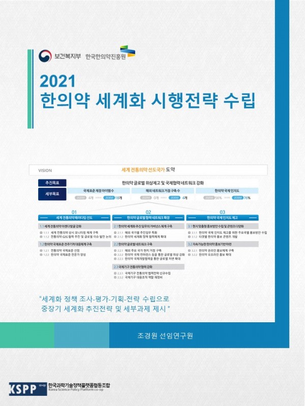 한의약 세계화 시행전략 수립 관련링크 페이지 정보 작성일22-03-03 13:13 조회4,507회 본문 한의약 정책의 글로벌 역량 강화를 위한 정책 조사 및 대안 제시 이전글 다음글 목록